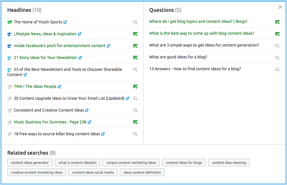 Topic Research helps content marketers discover the most popular content on the web and find the best ideas for future content. The tool reveals hundreds of headlines that will resonate with audience most. On top of that, you’ll get a list of most frequently asked questions to make sure your content addresses your audience’s biggest pain points.